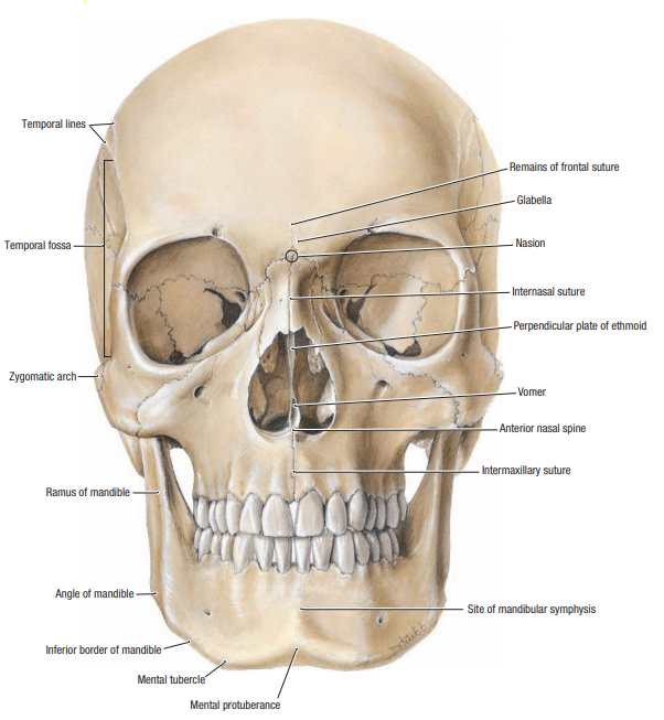 The anterior division of the middle meningeal artery courses deep to the pterion on the inner surface of the skull. A blow to the pterion, therefore, could rupture the middle meningeal artery and result in an epidural (extradural) hematoma, which is a buildup of blood between the dura mater and the skull. On a radiograph, an epidural hematoma appears as a convex shape because sutures at the sites where the periosteal dura is more firmly attached to the skull stop the hematoma from expanding. As a result, epidural hematomas expand inward toward the brain instead of along the side of the skull, which occurs in a subdural hematoma. Unconsciousness and death occur rapidly because of the bleeding that dissects a wide space as it strips the dura from the inner surface of the skull, causing pressure on the brain.