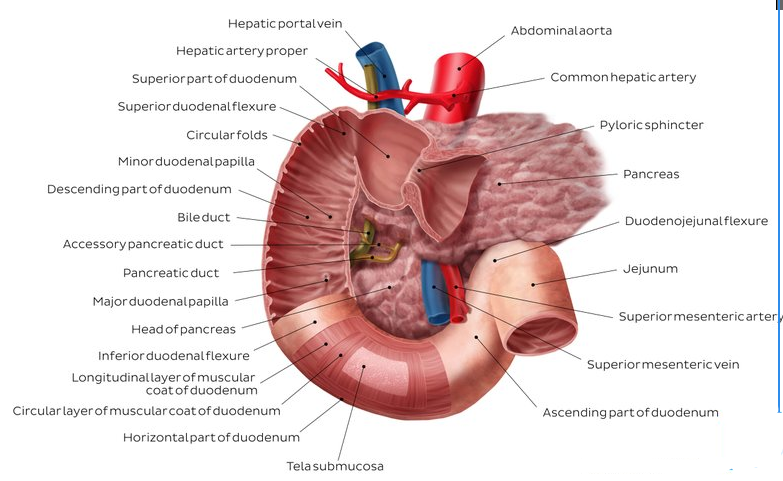 The vertebral level serves as an important landmark in locating the doudenum on a CT/MRI scan.